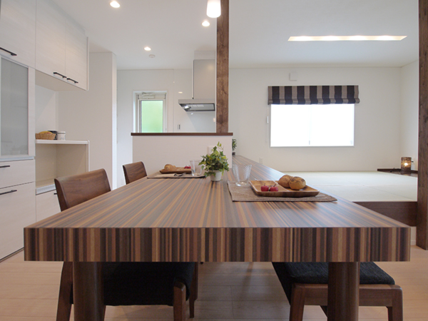 ■小上がりのタタミコーナーは家族のくつろぎの場所。