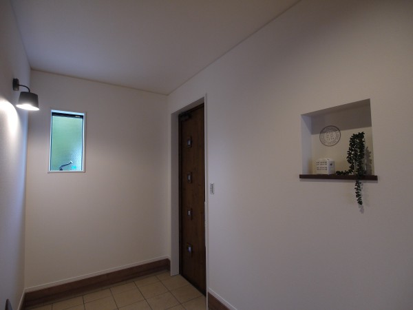 ■玄関脇にバイクガレージ、リビングのスリット窓からも眺められます。