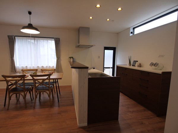 ■I型対面キッチン、調味料入れが便利。
