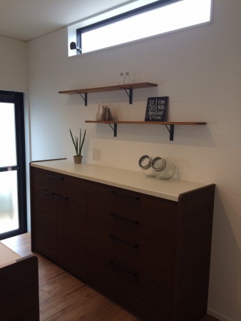 ■カウンター式食器棚に棚板をプラスでおしゃれに。
