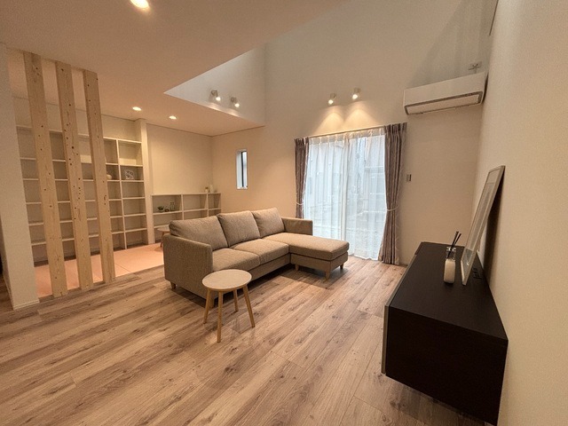 ご家族それぞれくつろげる畳スペースとリビング、6畳の吹き抜けあり。