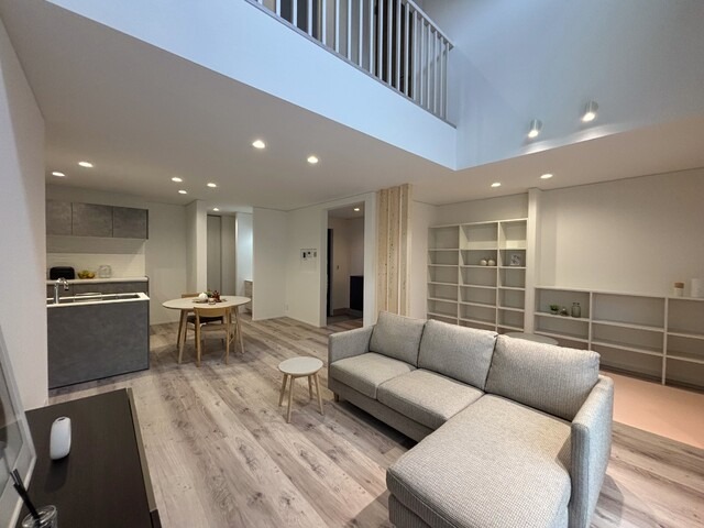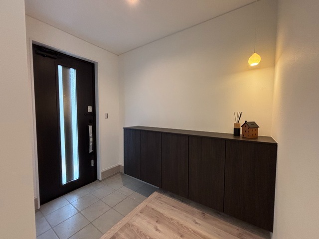 玄関ドアから扉なしでLDKへ、寒くない高気密高断熱仕様の家。