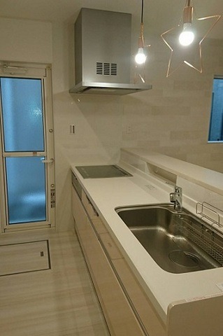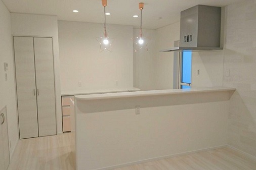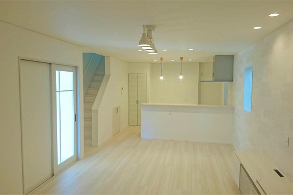 キッチンからリビング・ダイニングを真っ直ぐ見渡せるようにし、リビングの一角にはくつろげるようにタタミコーナーを造りました。