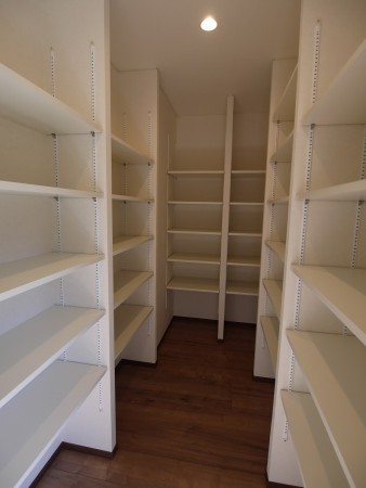 ■キッチン背面には勝手口に通じる大容量の食品庫。
