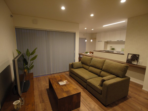 ■リビングに玄関ポーチとつながるワイドサッシ。愛犬が出入りしたり、くつろぎスペースも開放的に。