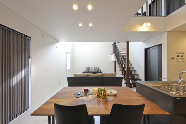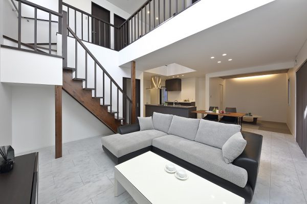 ■リビングには目を引くストリップ階段。