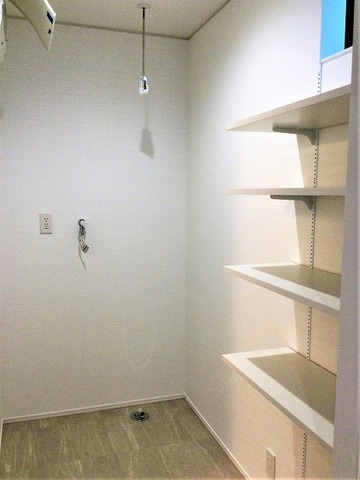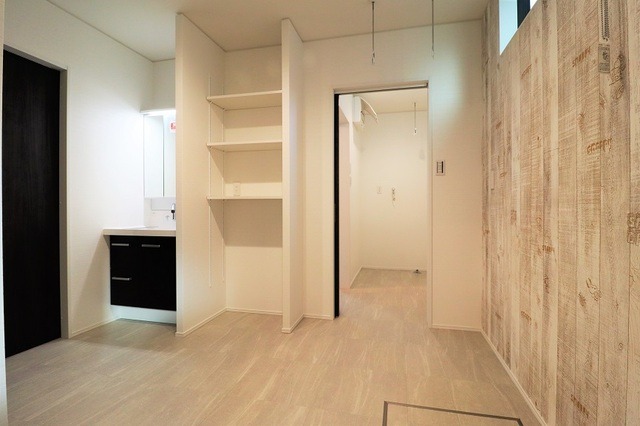 物干しスペースとウォークインを備えた洗面脱衣室はLDKにも繋がっており、