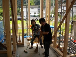 正直、打合せの時には家を建てる事の実感があまりなかったのですが、建前で実際に組みあがっていくマイホームを見て一気に実感がわいてきました。